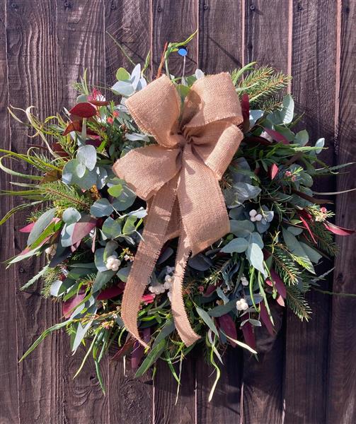 A fresh, festive wreath created using seasonal foliage.
