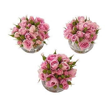 A trio of bubble ball vases featuring beautiful pink spray Roses.